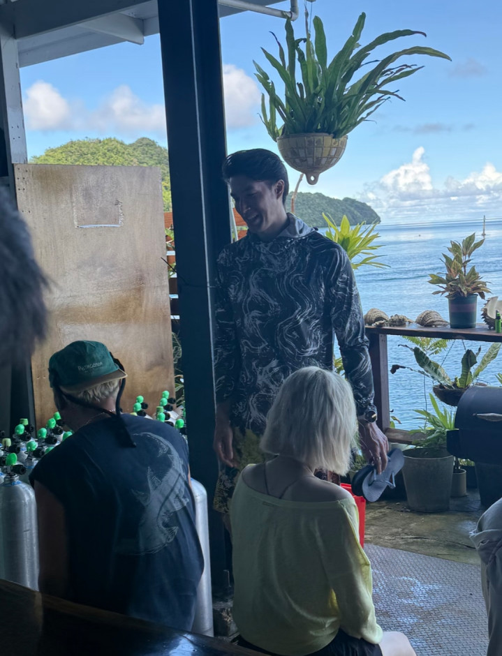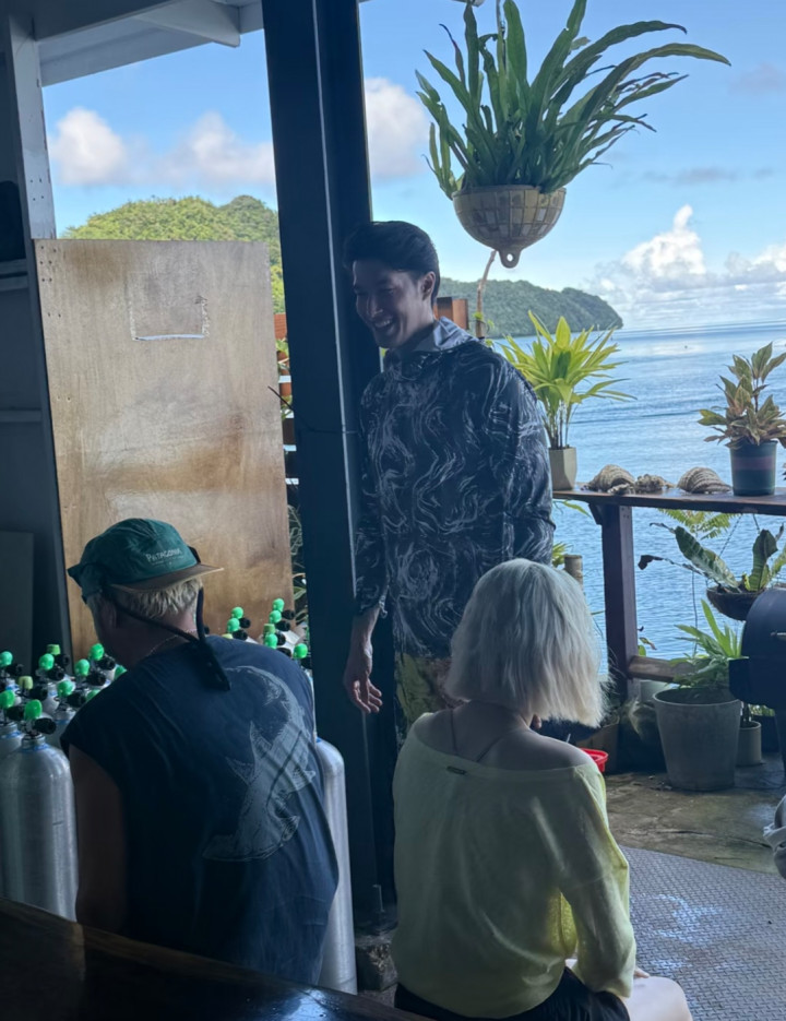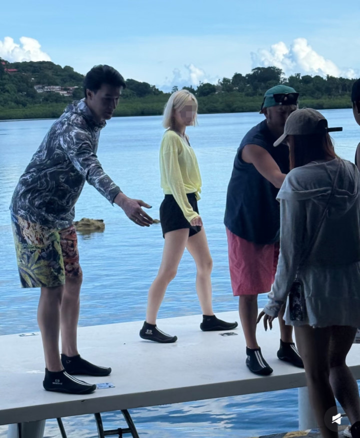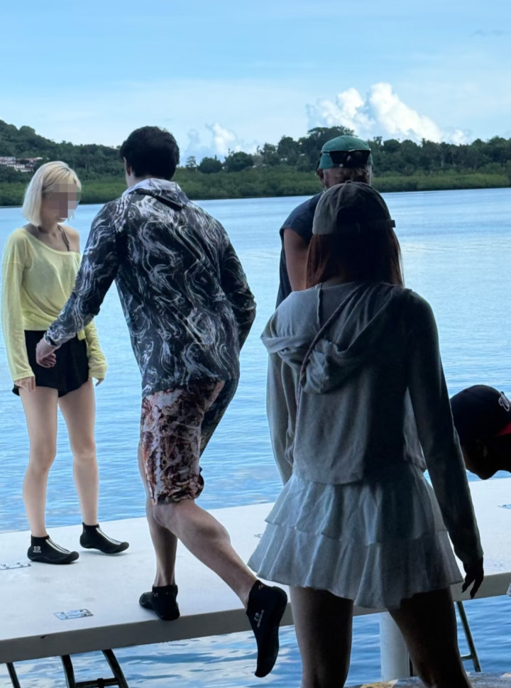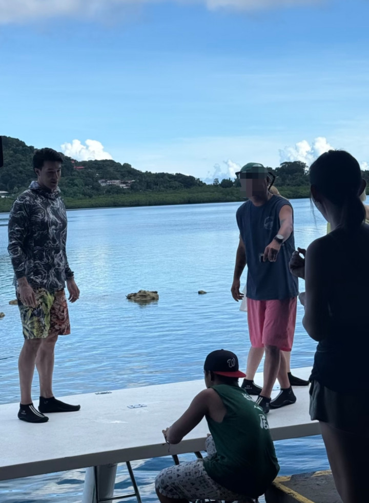 今天(9月17日),有网友发文称,在帕劳偶遇到他们,夸他皮肤白皙,五官精致,鼻子高挺,还是很帅气,他女朋友Kirstin长相漂亮。