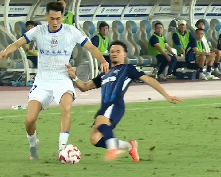 上半场,第2分钟,申花前场右路任意球,皮球开到后点,头球摆渡到门前,阿苏埃撞射破门!随后主裁判检查VAR,判罚阿苏埃手球犯规,进球无效。第40分钟,特谢拉踩到邓涵文小腿,VAR介入,主裁判观看回放后,向特谢拉出示黄牌。半场结束,双方都没有能够率先得分。