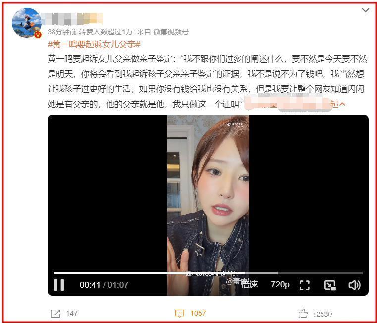 如今网友们质疑闪闪亲生父亲的身份,对于黄一鸣而言,这影响她的财路,也影响她的声誉,甚至她认为自己遭遇了“网暴”。