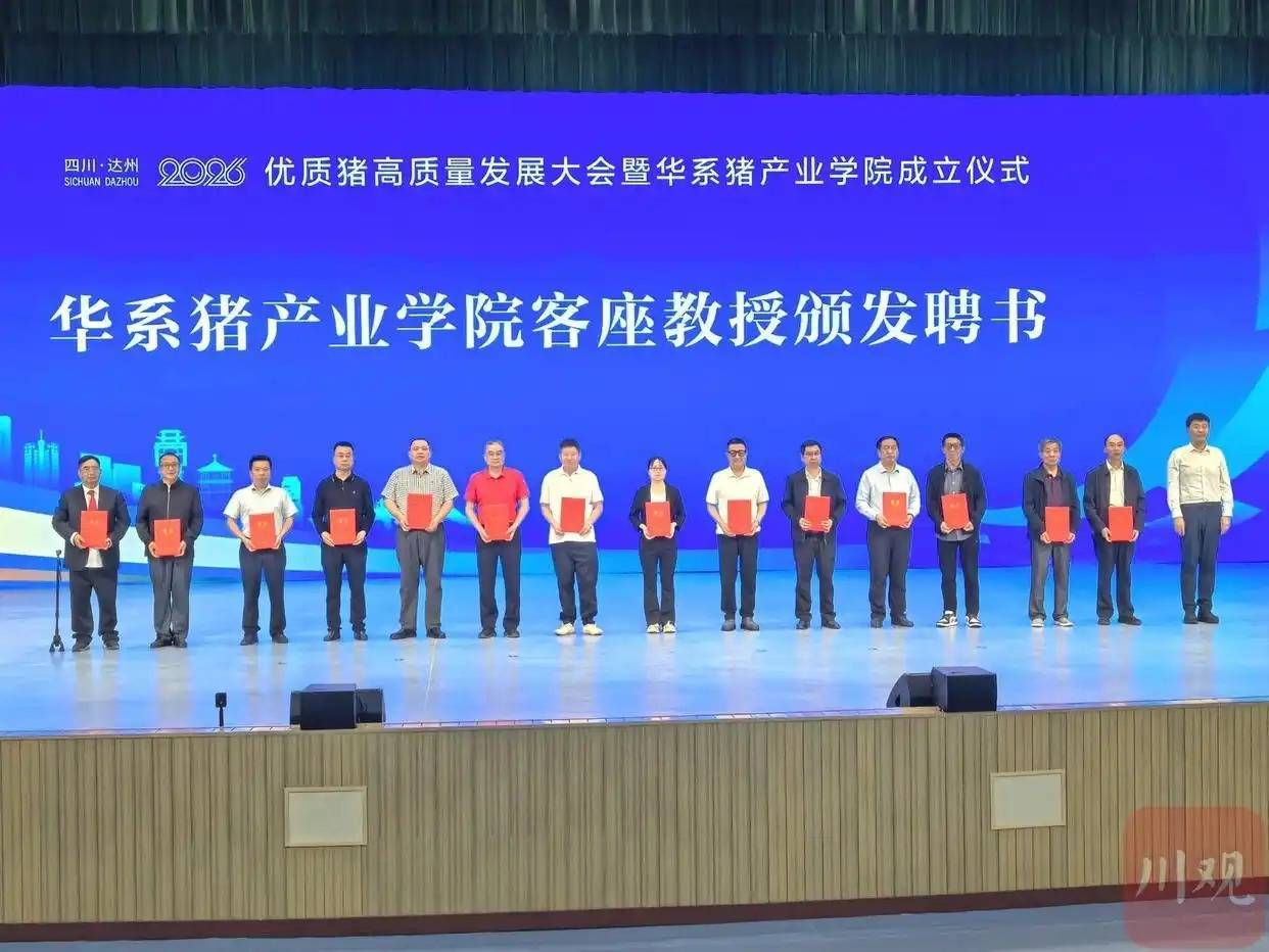 成立仪式上,达州职业技术学院为四川省畜牧科学研究院党委书记、国家生猪产业技术体系四川创新团队首席专家何志平等全国10多名专家学者颁发华系猪产业学院客座教授聘书。接下来,学校将b/p>
